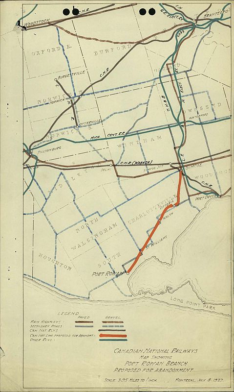 On May 24, 1888, the South Norfolk Railway Co. was amalgamated with the Grand Trunk, Georgian Bay and Lake Erie Railway Company, which on April 1, 1893, amalgamated with the Grand Trunk Railway Company of Canada, finally becoming part of the Canadian National Railway System, in 1923.