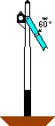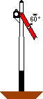 Secondly. A Forked Blue arm extended at an angle of 60 degrees from horizontal line thus ![]() by day or a White Light by night, will indicate Safety or Go ahead. |