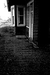 Like many GTR depots constructed in this period, the Caledonia station initially had 1"×6" drop siding, painted a light colour, contrasting with a darker-coloured protective base, some 3' high, clad in 1"×3" tongue-and-groove v-jointed sheathing (Figures 5-8). Door and window trim, decorative woodwork, and stained wooden roof shingles matched the base in colour, giving some much-needed definition to the otherwise simple façades (Figure 8). The fenestration of the building was largely conventional, as was the configuration of exterior doors, though for some reason the ends of the station as they appear in the original drawings were transposed in construction, and this necessarily affected door and window placement (Figures 1 and 5). The three large, double-hung windows at the waiting room end (Figure 8) help to counteract any impression of boxiness produced by the building's extraordinary narrowness relative to its length. The small track-side bay (Figure 10), and an (original) extension housing the washrooms, at the rear of the station (Figures 9 and 11), provide the only variety in the basically rectangular layout of the station.